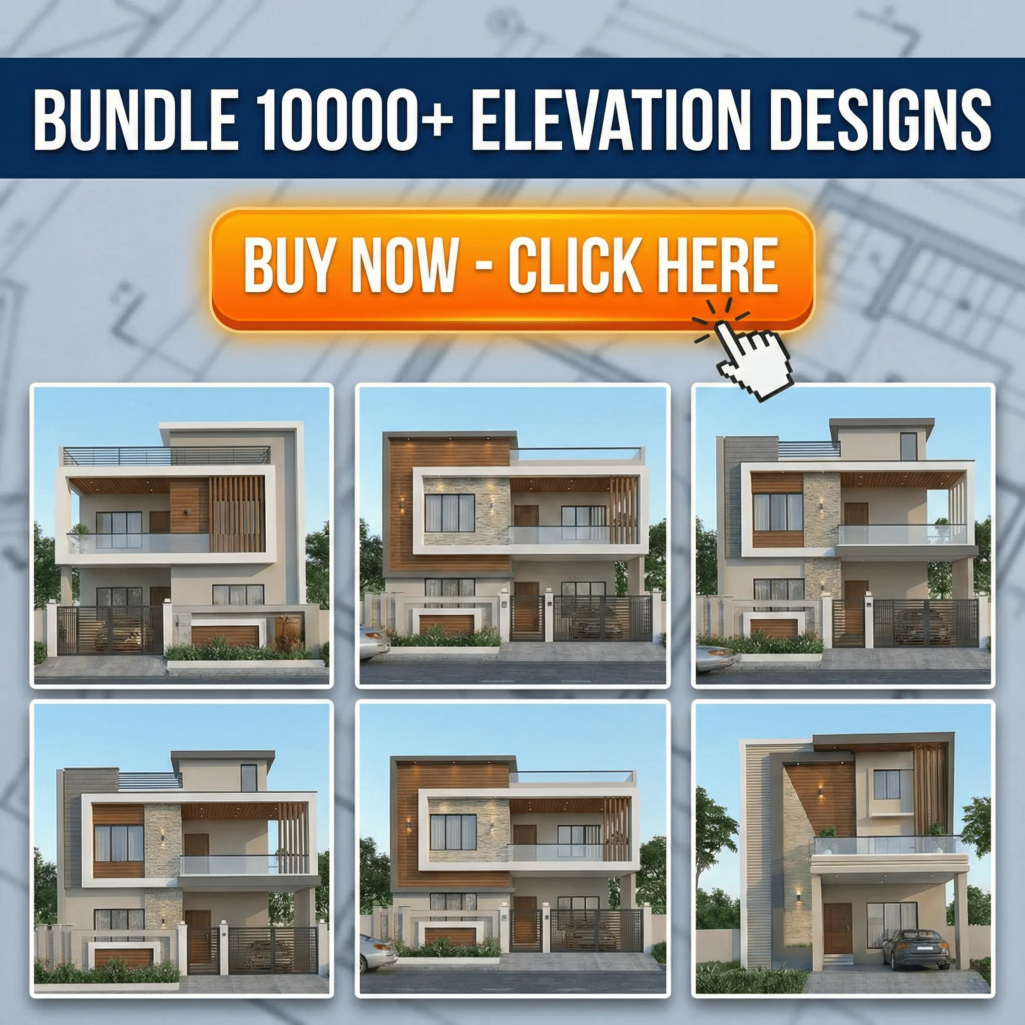The bundle features multiple architectural styles, including modern minimalist elevations, luxury façade designs, and contemporary exterior concepts. With diverse color schemes, balcony styles, compound wall ideas, and façade materials, this collection suits different plot sizes and regional preferences.